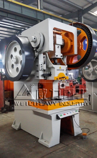 開式固定臺沖床(壓力機)為J21系列沖床。J21系列經濟型開式固定臺壓力機是屬于薄板沖壓的通用壓力機,適用于各種冷沖壓工藝,如剪切、沖孔、落料、彎曲和淺拉伸工作。其結構特點如下: